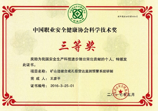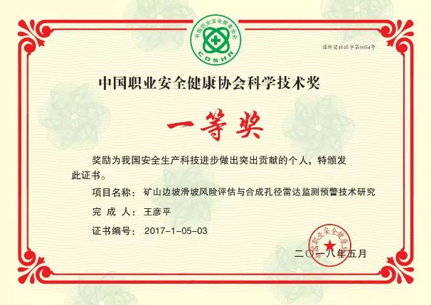 所研制雷达广泛用作矿山、国土等安全监测预警装备,服务于深圳光明、浙江丽水、四川汉源、甘肃永靖等我国30余次重大滑坡抢险救援应急监测,经央视等多家媒体报道,受到各级政府的好评,获得北京市科学进步一等奖、中国专利优秀奖等。
