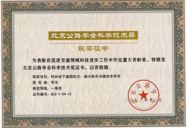 团队获北京市科技进步奖一等奖、北京市公路学会科学技术奖一等奖(团体及个人)、中国专利优秀奖、中国职业安全健康协会科学技术奖一等奖、中国职业安全健康协会科学技术奖三等奖。
