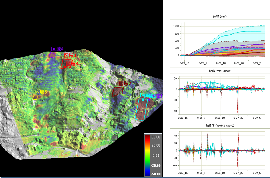 下图分别为2020年四川汉源抢险救灾现场的形变监测图;以及所研制雷达监测设备用于北京新首钢大桥监测桥梁建设、运维全过程实施24小时不间断连续监测,实时掌握桥梁全局动态变形,为设计指标校验、建设方案修正、桥梁运维安全提供信息支持。
