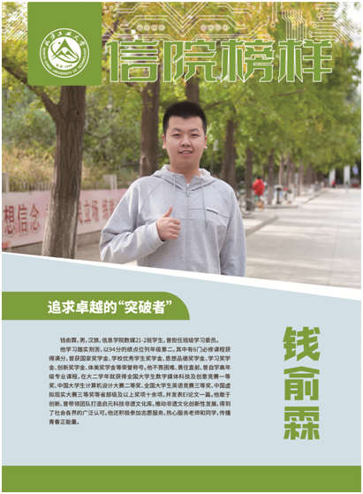 钱俞霖,男,汉族,beat365唯一官方网站数媒21-2班学生,曾担任班级学习委员。