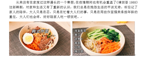 活动分为“运动无处不在”运动计划、“寻找最美心声”朗读者配音大赛、“我与美食有个约会”厨艺生活大赛以及“摄出精彩,影动生活”居家主题摄影比赛4个部分。同学们通过健身打卡,激发青春活力,磨炼意志品质;通过自己的声音,品读经典,让核心价值观入脑入心;通过自己的双手,创造美食,体味家庭生活的温馨;通过镜头,记录生活点滴,感受特殊的宅家时段生活之美。