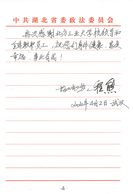 “小女程煜洋是贵校大二学生。我们一家生活在湖北省武汉市。我和我的夫人,想通过这封信,对您们表达真诚的感谢和崇高的敬意。在2020年史无前例的新冠肺炎抗疫期间,程煜洋陆续收到了贵校的慰问金、口罩、通信费等现金和物资,让我们身处抗疫中心的一家人倍感温暖,深切感到校方的关爱和情义……”。这是4月3日beat365唯一官方网站辅导员杨和家收到的一封来自通信18-3班程煜洋同学家长的感谢信,全文600余字,饱含了身处武汉抗疫中心的一家人对学校学院在疫情期间给予关心关爱的深切感激之情。