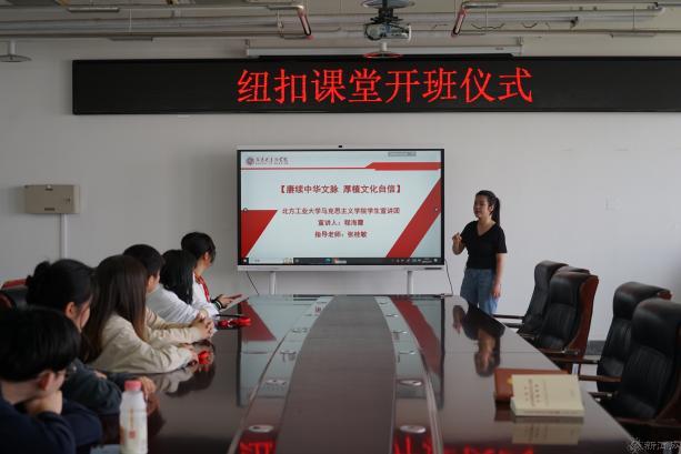 “纽扣课堂”2023年第一期主要结合学习贯彻习近平新时代中国特色社会主义思想主题教育,围绕《习近平新时代中国特色社会主义思想学习纲要(2023年版)》制定统一的宣讲提纲,指导教师对内容进行指导把关并组织宣讲小教员集体备课,小教员们最终深入学生宿舍进行宣讲和讨论。宣讲会后进行问卷调查,收集问题对宣讲提纲、内容和方式进行调整,不断提高理论宣讲的质量和效果。接下来,纽扣课堂将定期推出优秀宣讲作品,以青年带动青年,充分发挥朋辈引领与党建引领的作用。