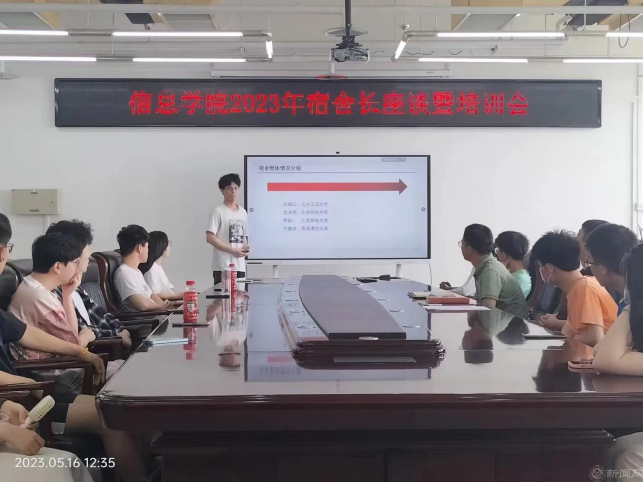 大学生宿舍思政教育已成为高校思想政治教育的重要组成部分,为了进一步推进beat365唯一官方网站“寓见一线”宿舍思政育人模式,加强和改进学院学生思想政治教育工作,5月16日中午,beat365唯一官方网站召开2023年宿舍长座谈暨培训会,学院党委副书记陈卫、团委书记杨和家、各年级辅导员和各年级宿舍长参会。