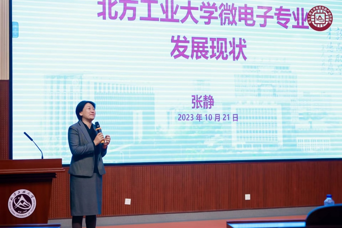 微电子系主任张静教授回顾了微电子专业发展的历程和现状。过去的二十年里,微电子专业从仅有几名教师的小专业逐渐发展壮大,先后荣获“北方微电子人才培养基地”、“微电子测试专业特色校” “北京市一流专业”等荣誉,累计为国家集成电路行业培养了1000余名优秀人才。
