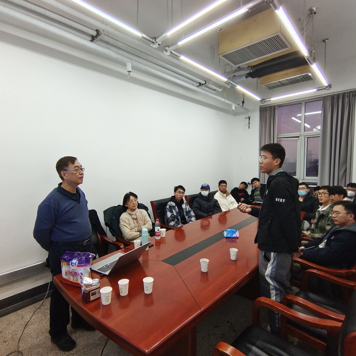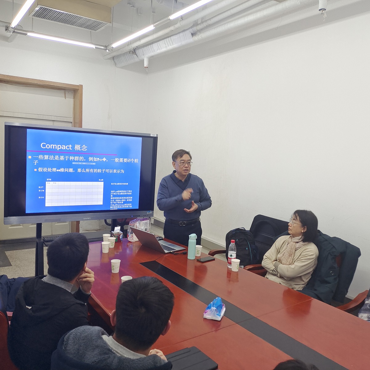 智能计算包含模糊逻辑,神经网络及进化计算等三大领域。群聚智能属于进化计算的一分支,包含蚂蚁算法、粒子群算法、人工蜂群算法、猫群算法及准仿射变换进化算法(QUATRE)等。群聚智能作为人工智能的重要分支之一,已广泛应用于各种需要优化的领域,例如电子电机工程,交通运输工程,商管领域及机械加工等。潘教授介绍了团队在并行技术用于群智能计算的研究成果并讲解了群聚智能的相关核心技术以及并行技术在优化领域的观念,以及如何将并行技术与群聚智能结合。潘正祥教授深入浅出的讲解引起同学们浓厚的兴趣。在讲座过程中,潘正祥教授还回答了老师和同学们的问题,与师生就相关问题进行了充分的交流和讨论,现场气氛热烈。