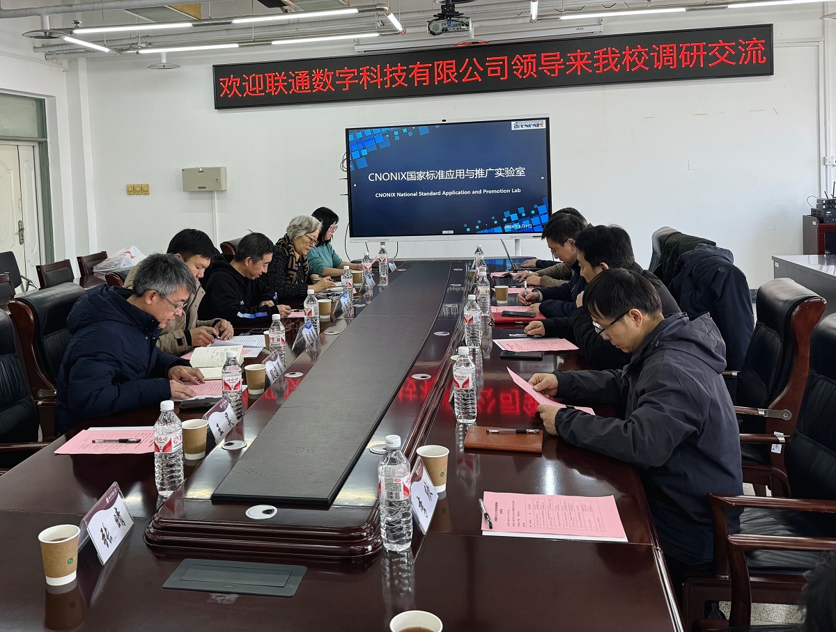 3月7日,联通数字科技有限公司数字化转型首席专家杨海明一行来beat365官网进行调研交流。科学技术研究院副院长李道勇、beat365唯一官方网站院长马礼及beat365唯一官方网站CNONIX国家标准应用与推广实验室全体成员参加座谈,会议由beat365唯一官方网站副院长段建勇主持。